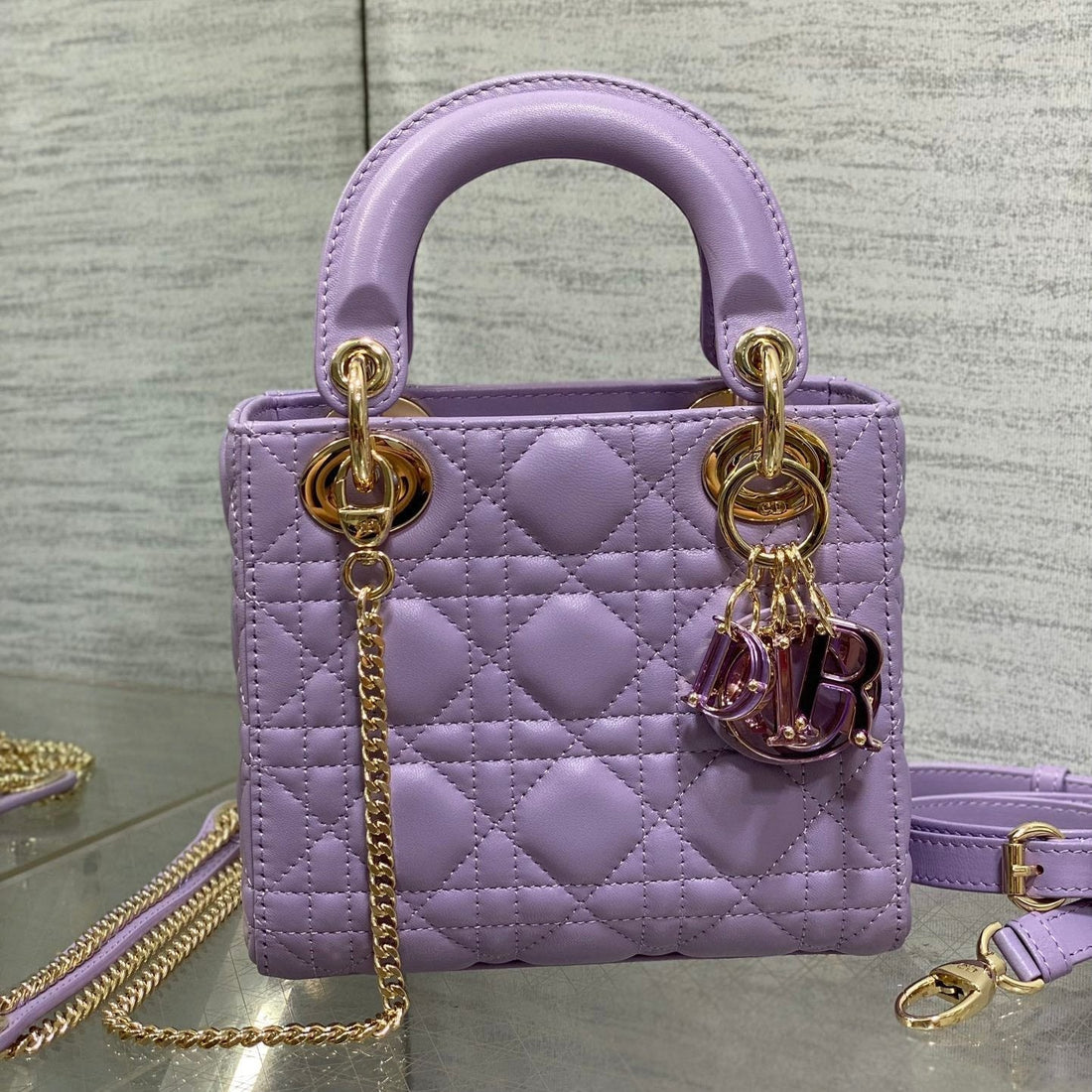 CD Lady Bag 20cm Black Lambskin Brown Charm