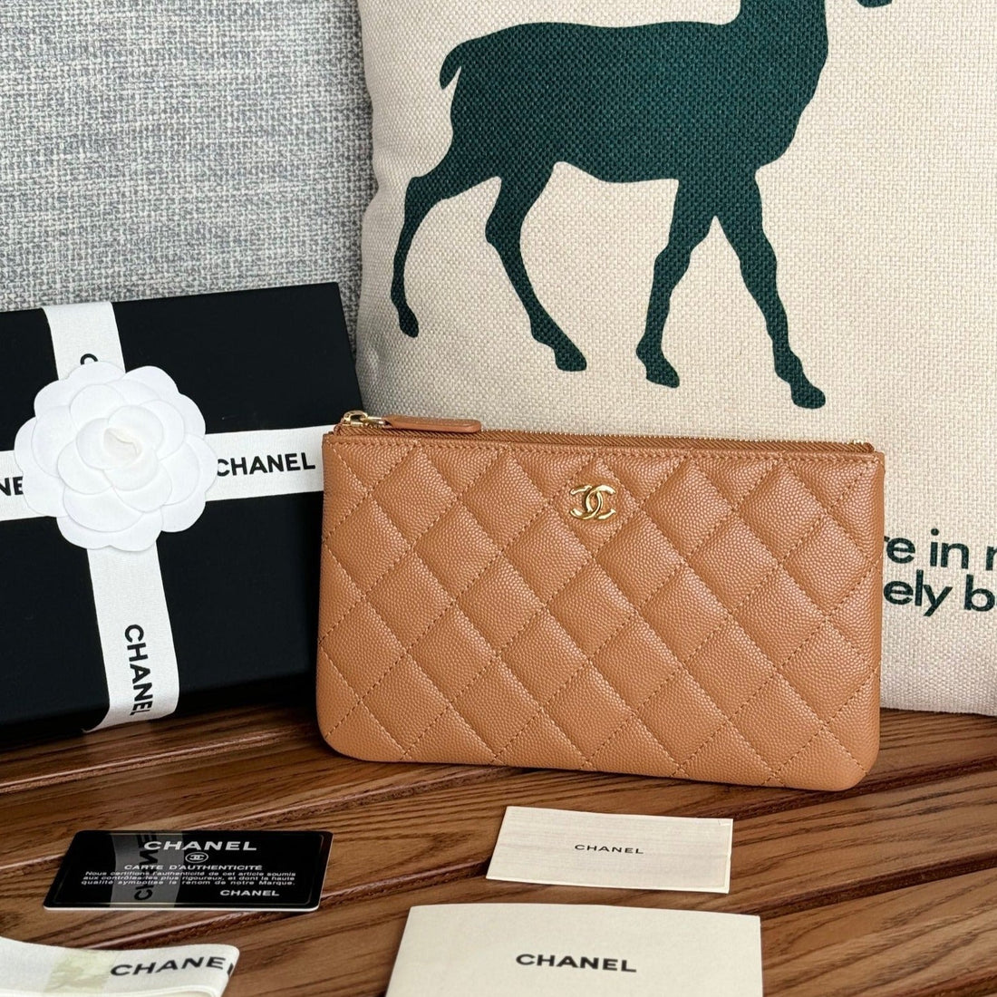 cc 19 zipped coin purse 11cm brown lambskin gold hardware