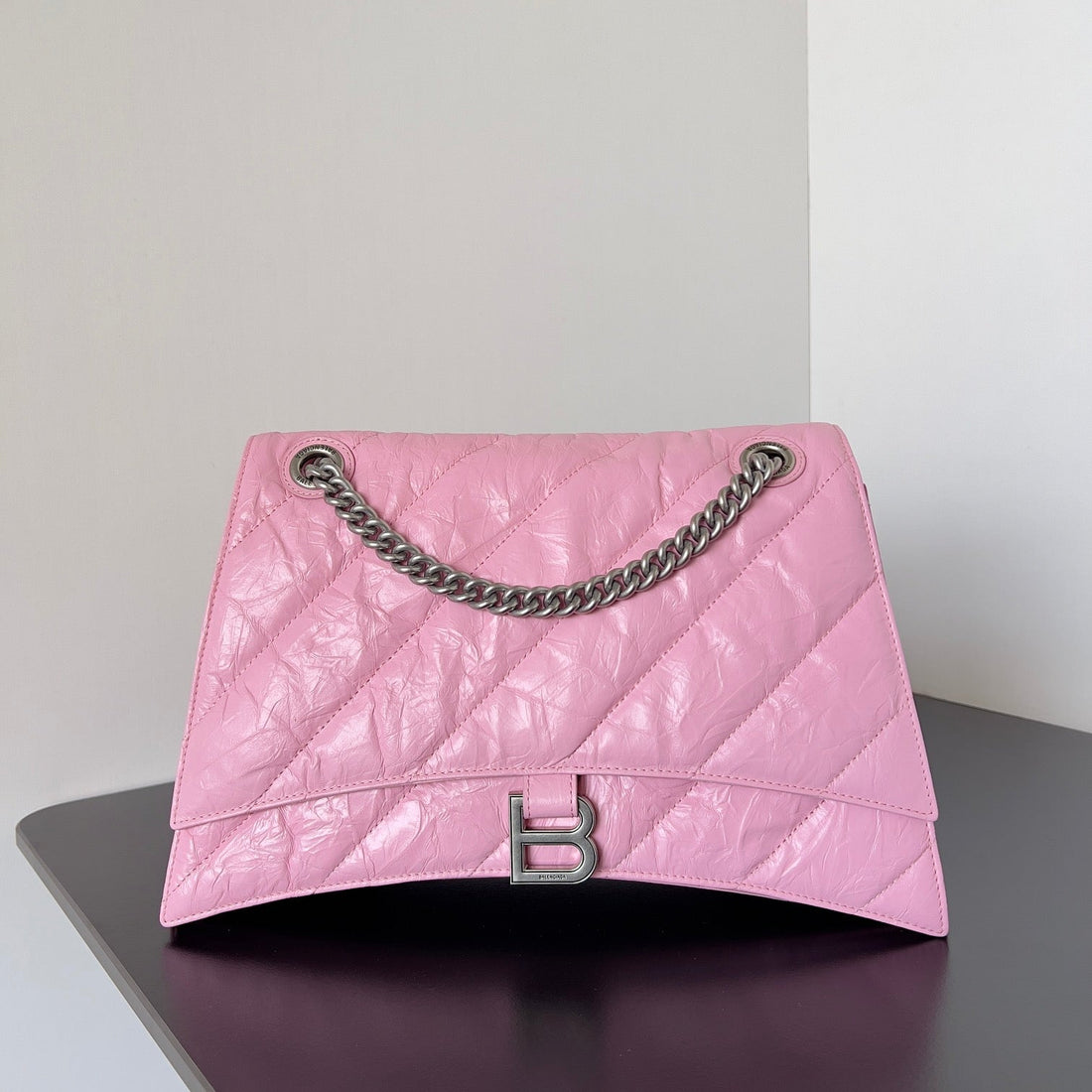 CRUSH CHAINED BAG 32 IN PINK QUILTED CRUSHED CALFSKIN SILVER HARDWARE