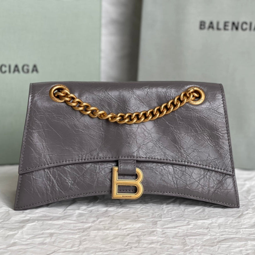 CRUSH MEDIUM CHAIN BAG 31 IN SUVA GRAY CRUSHED CALFSKIN GOLD HARDWARE