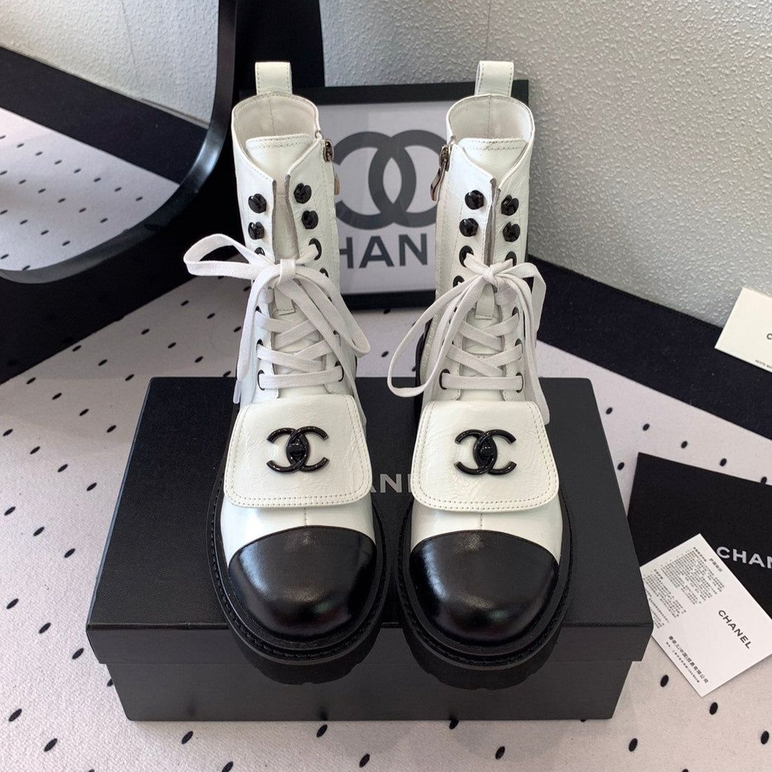 CC Short Boots In White Mix Black Logo Print Lambskin 938060