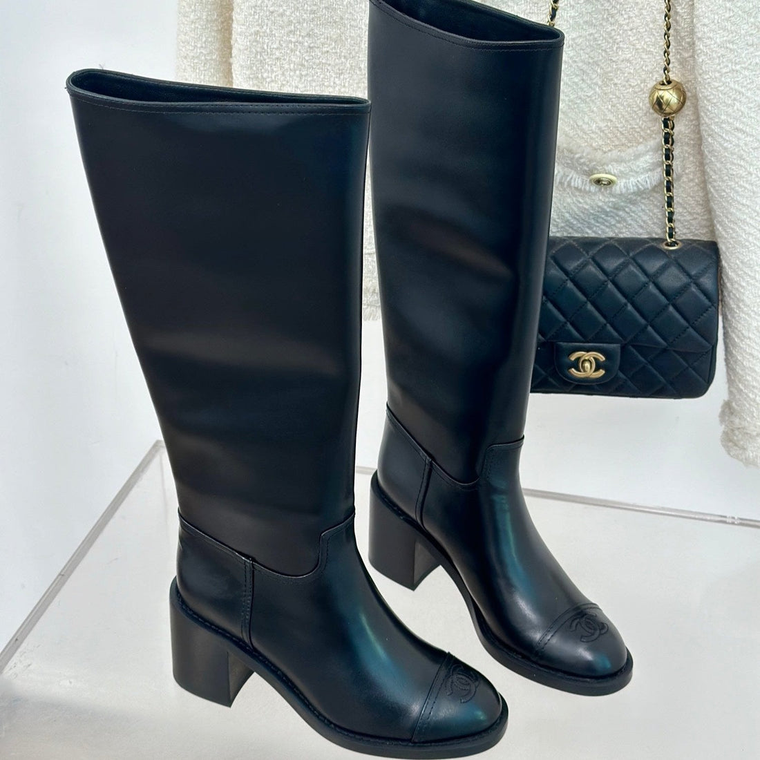 CC High Boots 80mm Glossy Black Wrinkled Quilted Calfskin