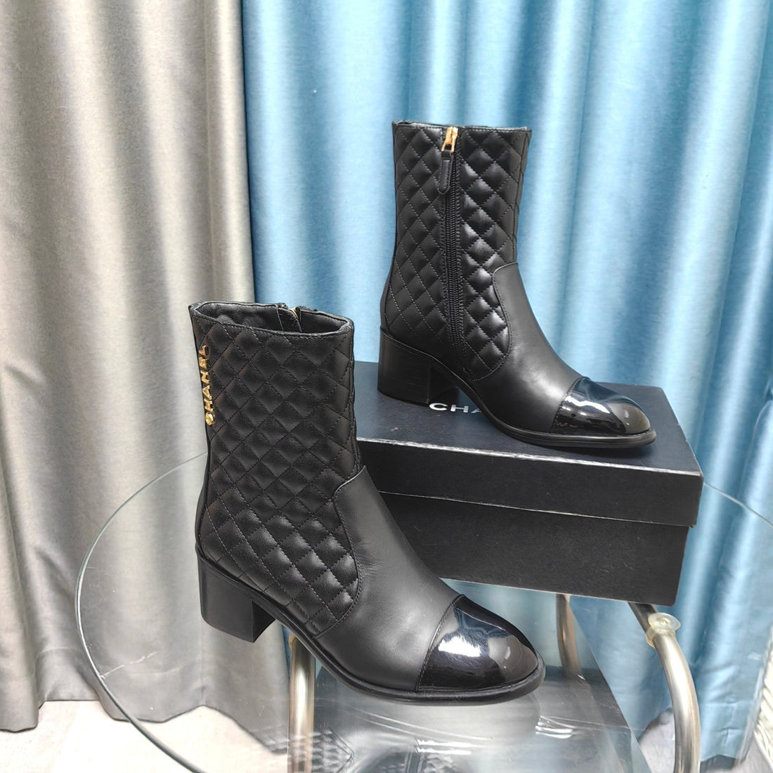 CC Short Boots Black Quilted Cowhide And Lambskin