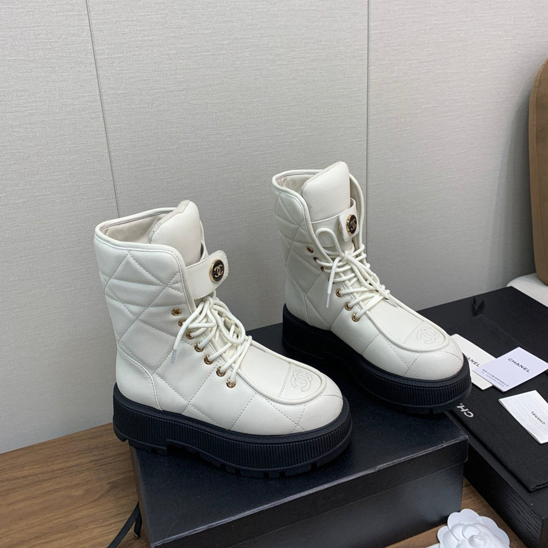 CC CHUNKY BOOTS IN WHITE SMOOTH FLEECE AND CALFSKIN