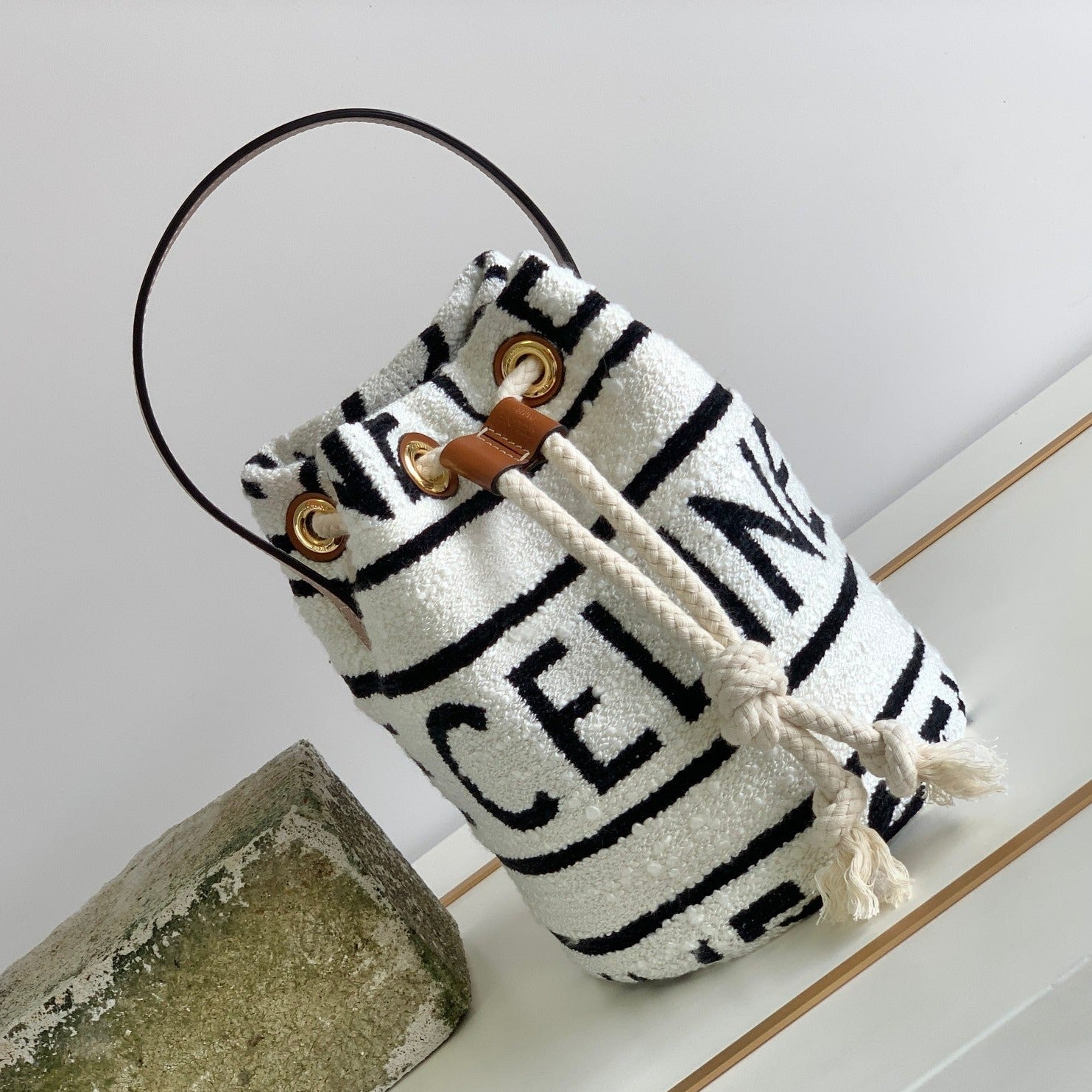 • Material: fabric lining, hand carry, drawstring closure, leather handle length 13 cm