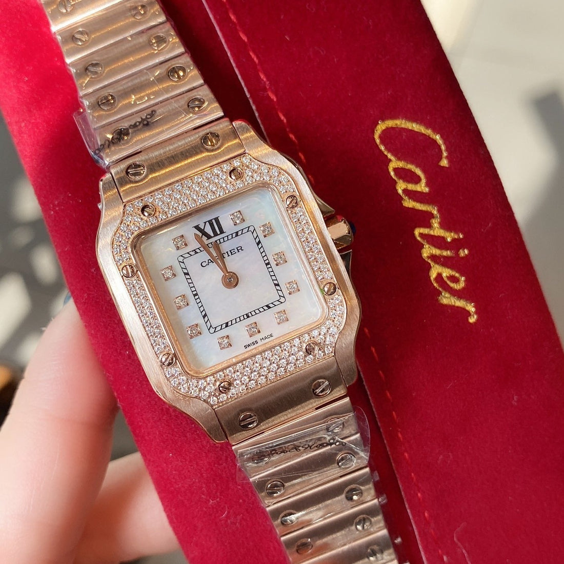 SANTOS DE CARTIE 27MM QUARTZ ROSE GOLD DIAMOND BEZEL