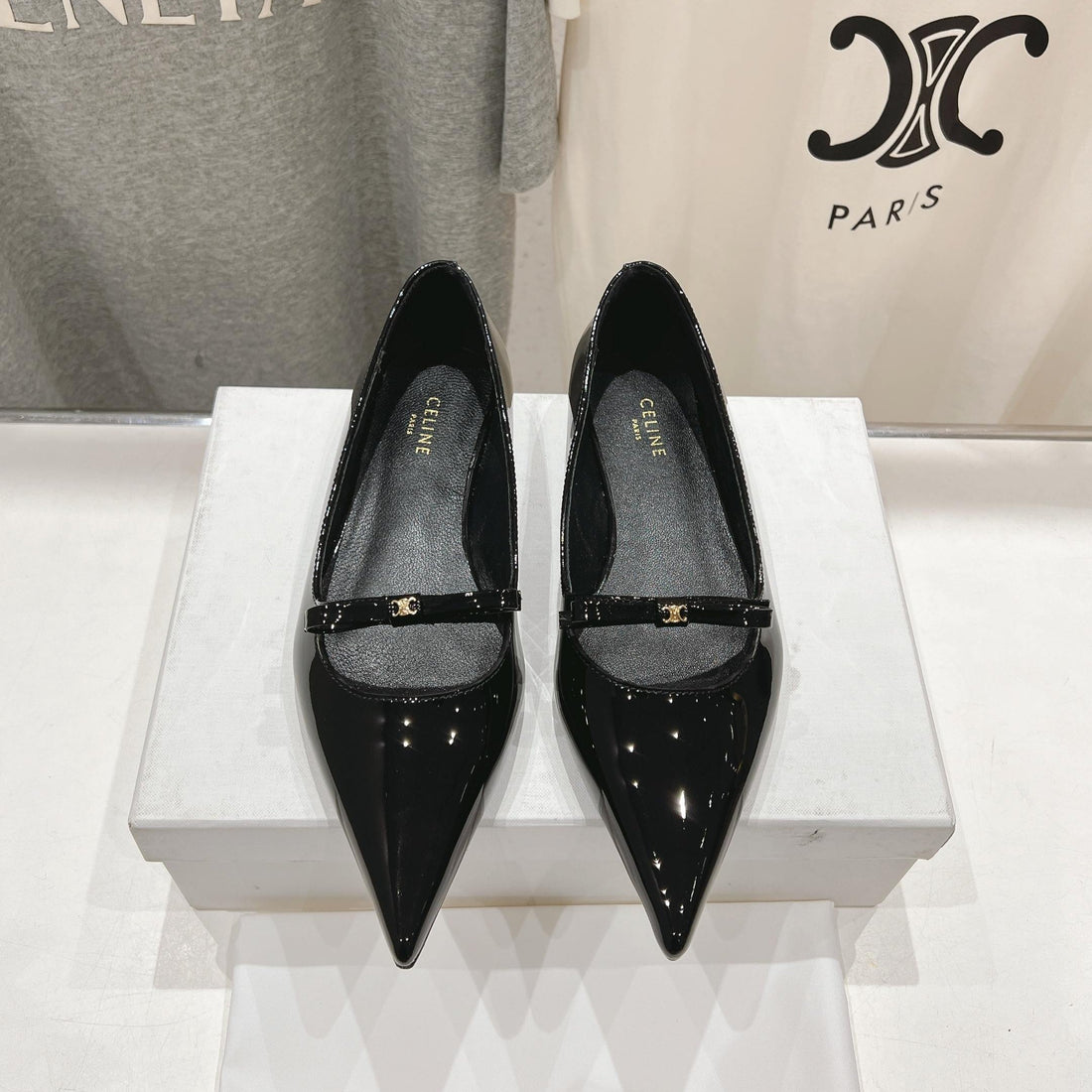 CELINE 25C Ballet Flats Black Patent Leather 236744