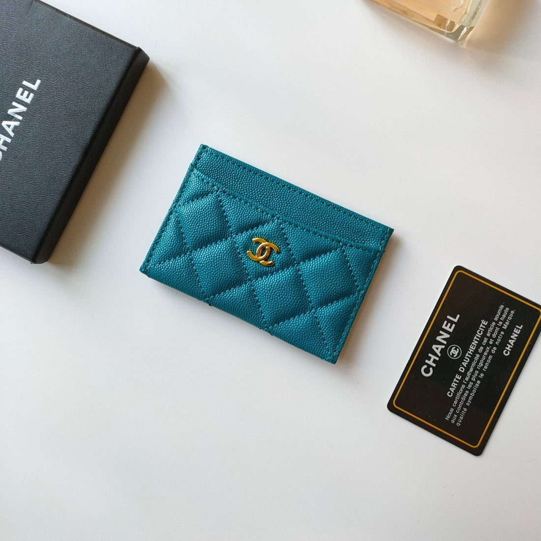 CC ZIPPED CAVIAR PURSE 11 TURQUOISE CALFSKIN GOLD ICON