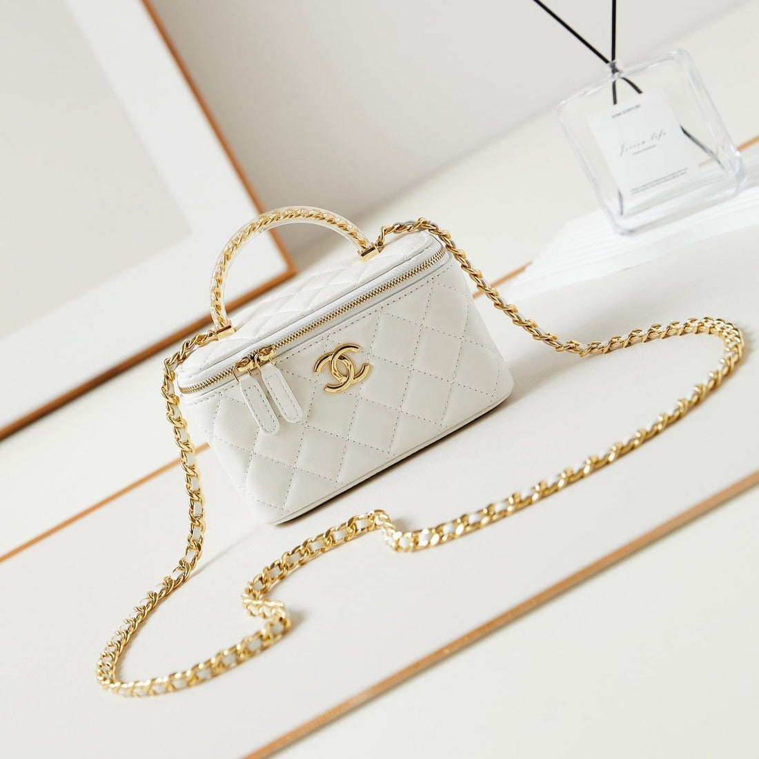 cc woc 13cm with top handle white quilted caviar leather silver hardware