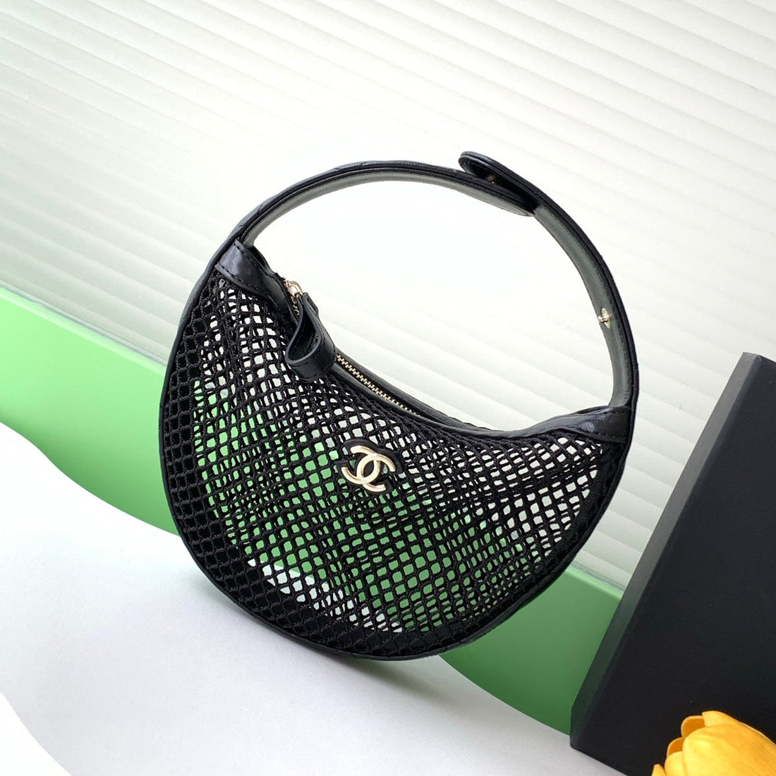 CC 25S Pouch Bag 17cm Black Mesh Calfskin