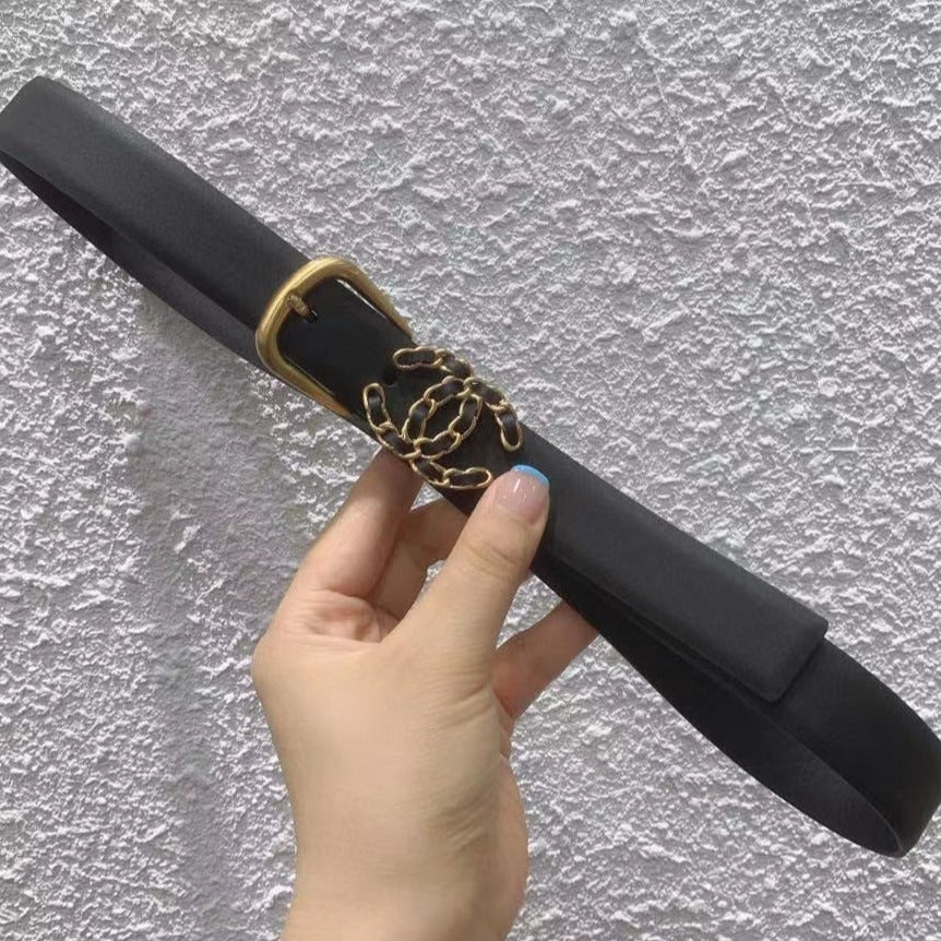 Cc Belt 20Mm Buckle Gold Black Leather Black