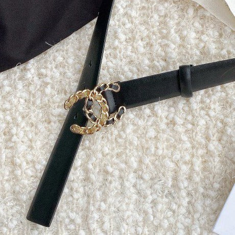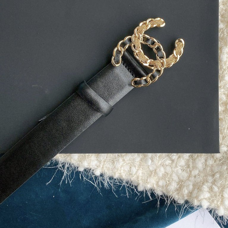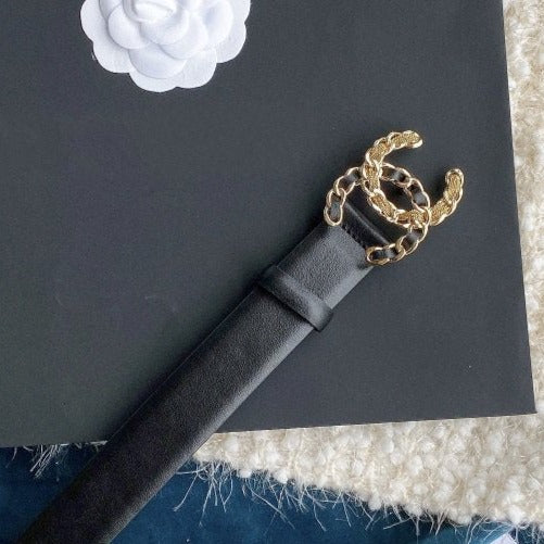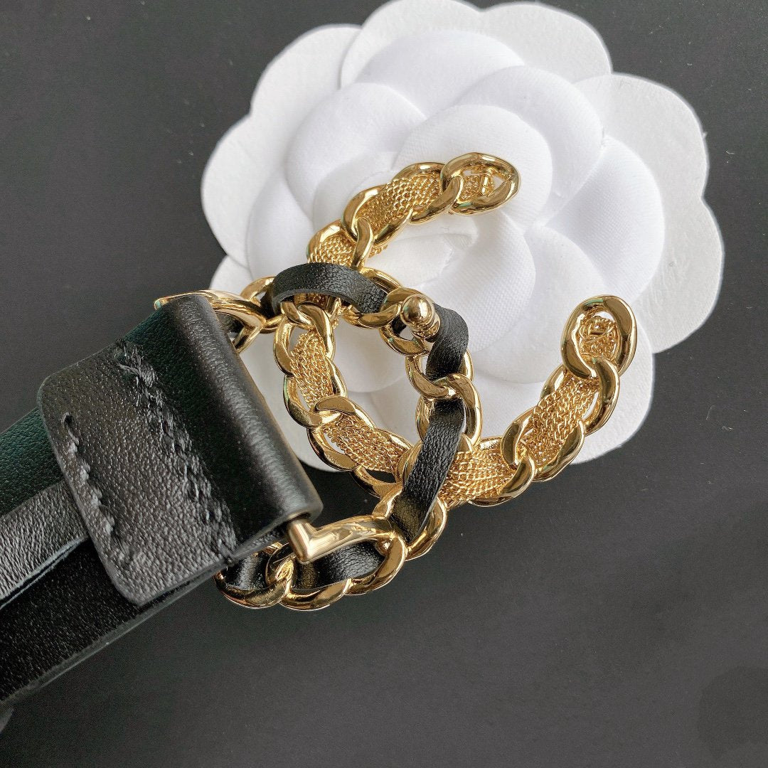 Cc Women'S Belt 3.0Cm Buckle Multicolor Leather Black