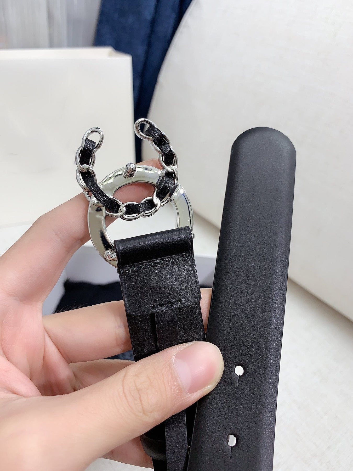 Cc Women'S Belt 30Mm Leather Black Buckle Silver Black Diamond