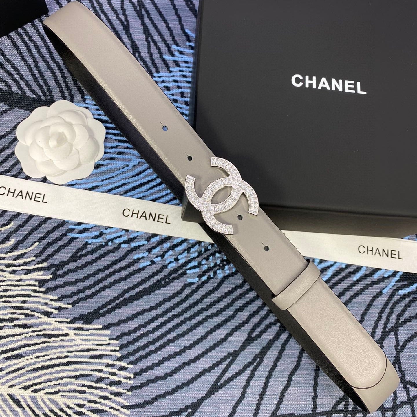 Chanel 25S Belt 30 Mm In Grey Calfskin With Silver Hardware 615093