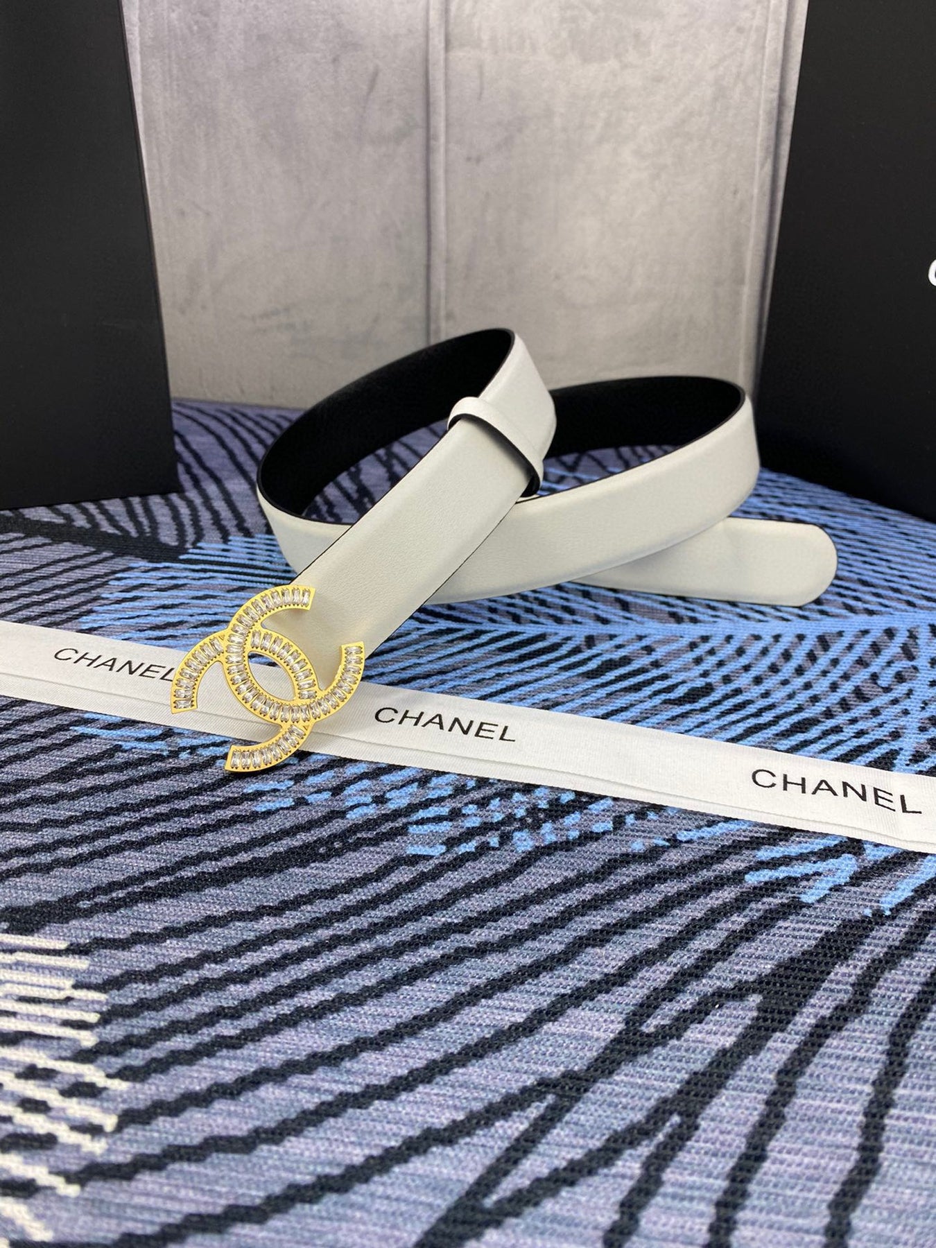 Chanel 25S Belt 30 Mm In White Calfskin With Gold Hardware 615098