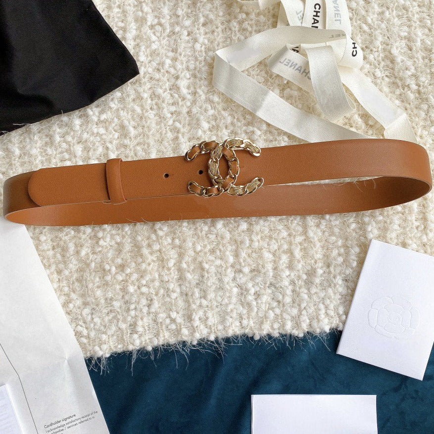 CC WOMEN'S BELT 3.0CM LEATHER BROWN BUCKLE SILVER
