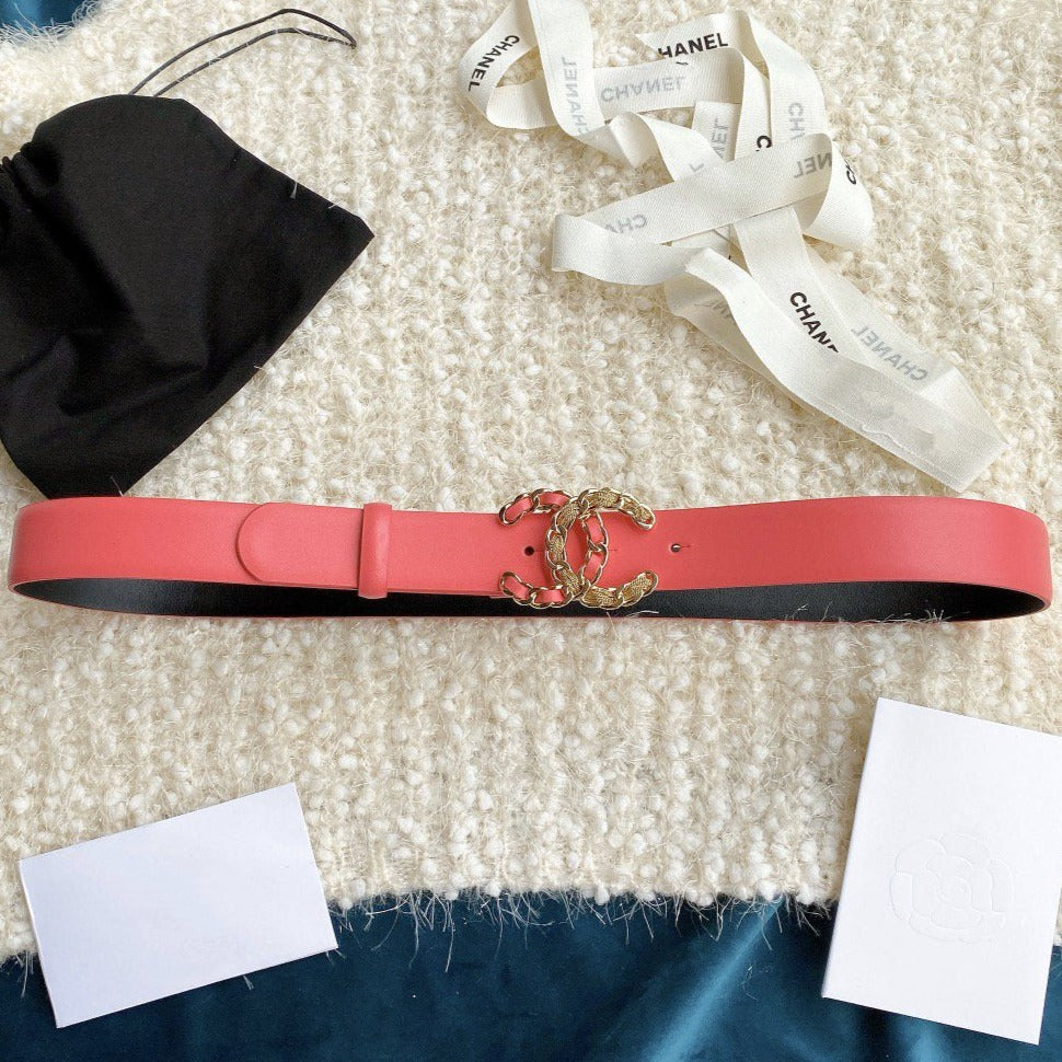 CC WOMEN'S BELT 3.0CM LEATHER RED BUCKLE GOLD