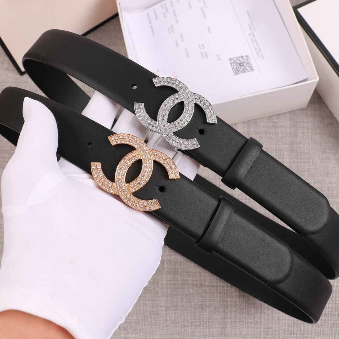 CC WOMEN'S BELT 3.0CM BUCKLE 2 ROW DIAMOND LEATHER BLACK
