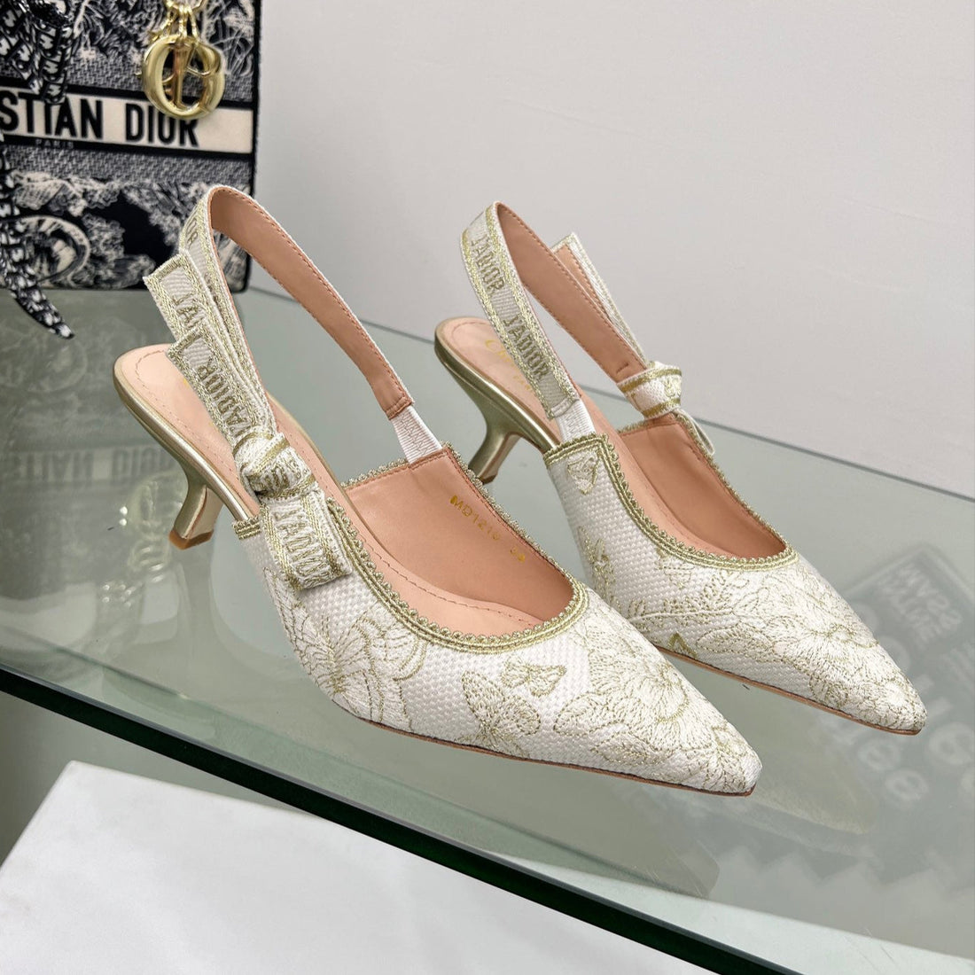 cd slingback pump 65 embroidered cotton white calfskin resin pearl