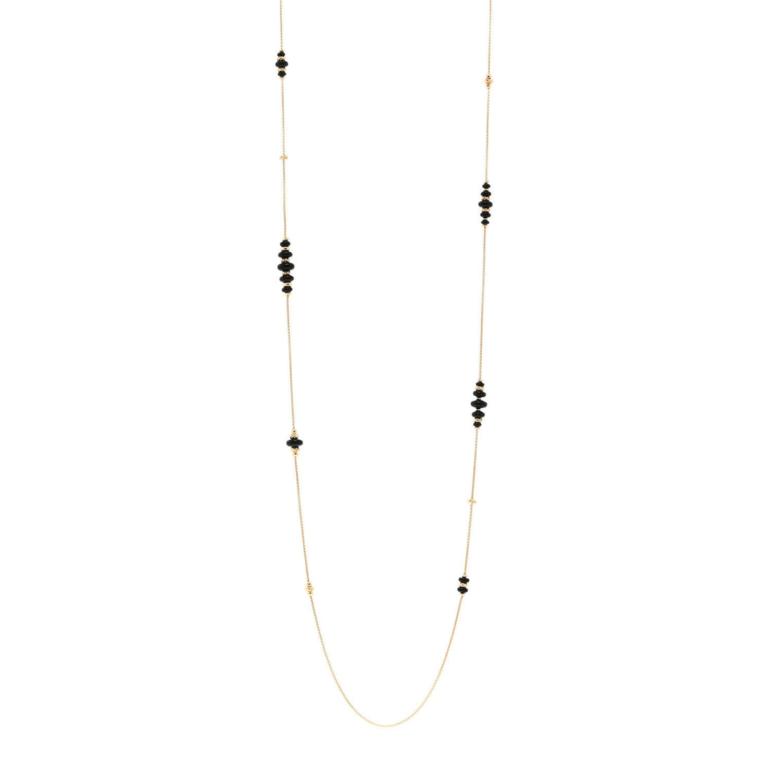 18K Yellow Gold Black Onyx Rio Rondelle Long Station Necklace