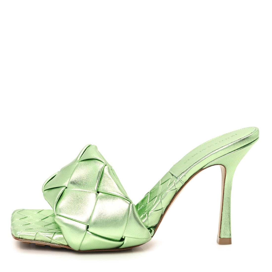 Metallic Nappa Maxi Reflection Weave Lido 90mm Mule Sandals 39 Pistachio