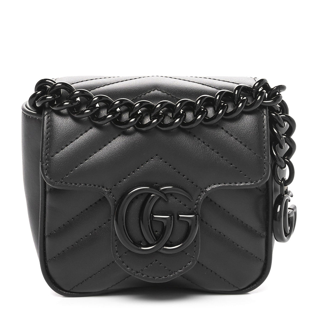 Calfskin Matelasse Monochrome GG Marmont Chain Mini Belt Bag Black