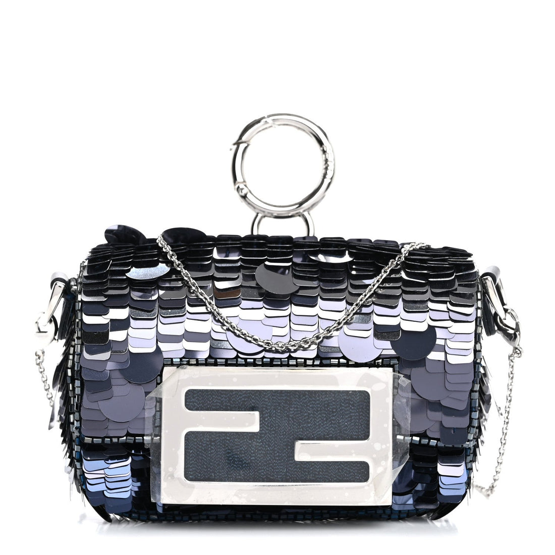 Sequin Paillettes Shiny Nappa Sex and the City Nano Maxi Buckle Baguette Charm Midnight