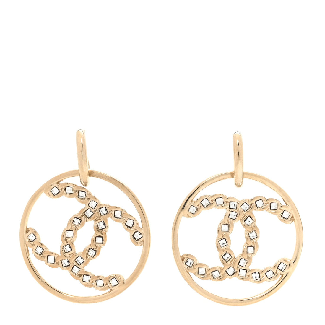 Crystal Chain Chanel Strass CC Drop Earrings Gold