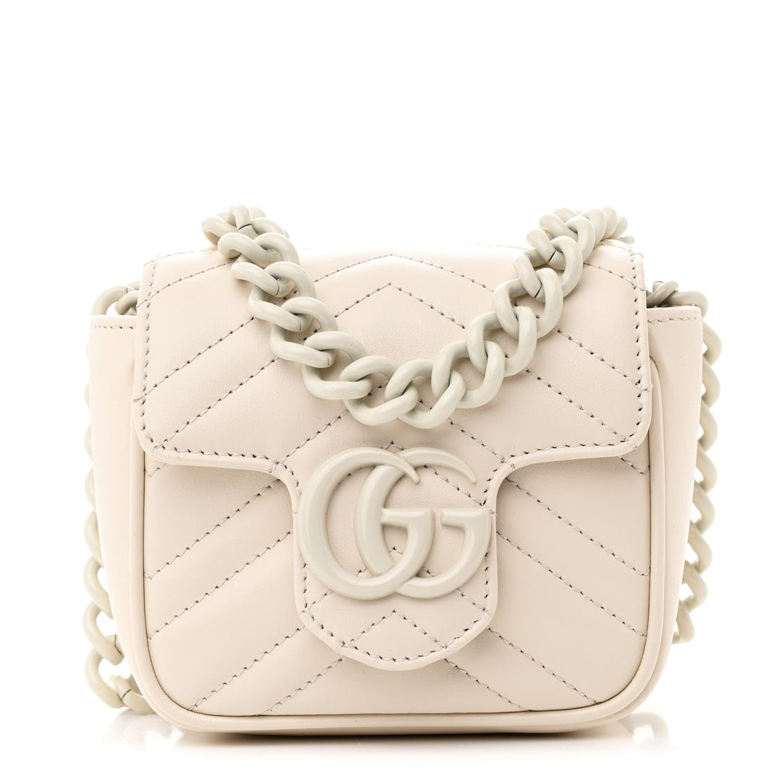 Calfskin Matelasse Monochrome GG Marmont Chain Mini Belt Bag Mystic White