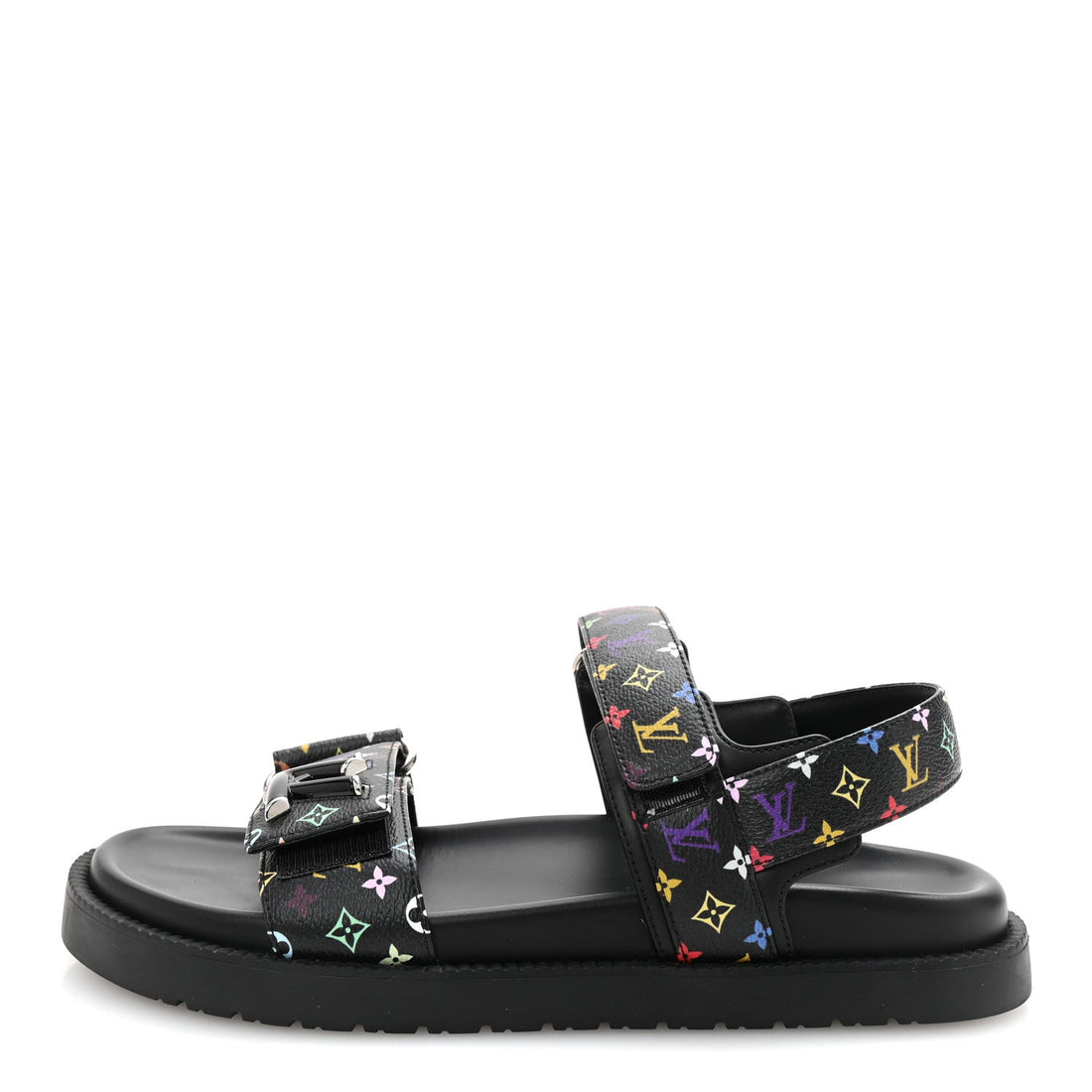 LV X TM Monogram Multicolor Sunset Flat Sandals 37.5 Black
