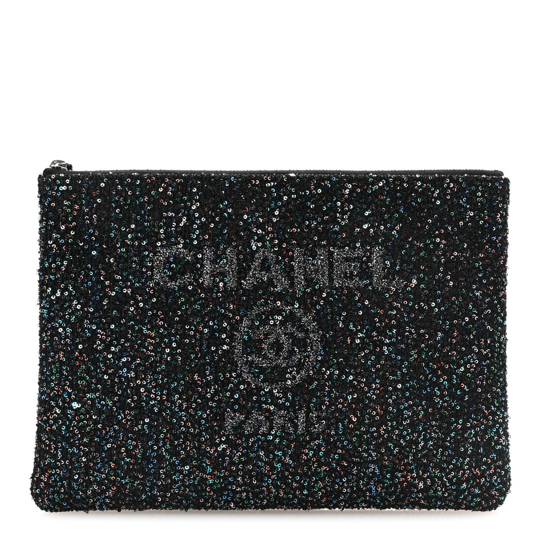 Canvas Sequin Medium Deauville Cosmetic Pouch Black