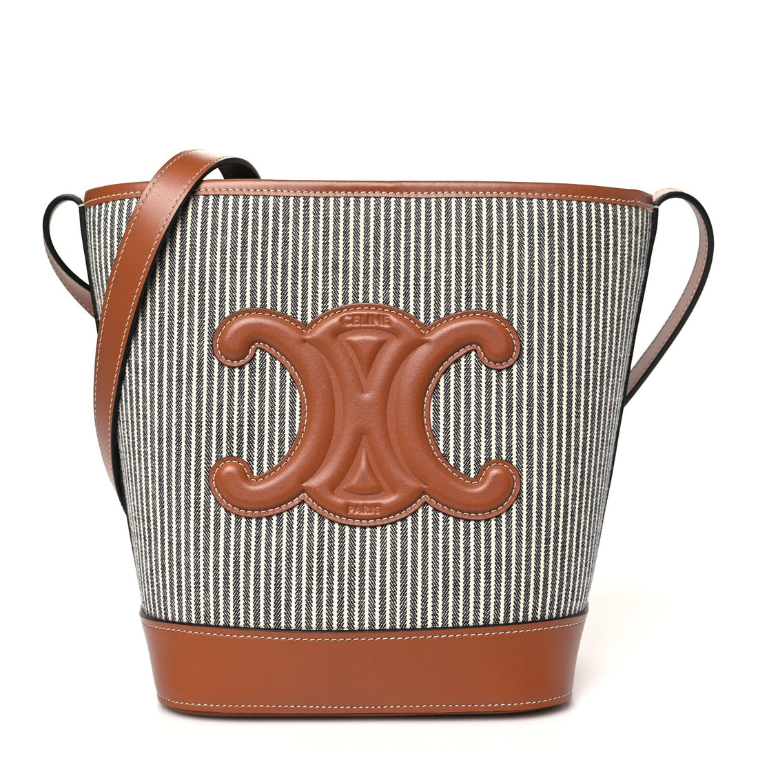 Canvas Calfskin Stripe Triomphe Small Bucket Bag Navy Blue Tan