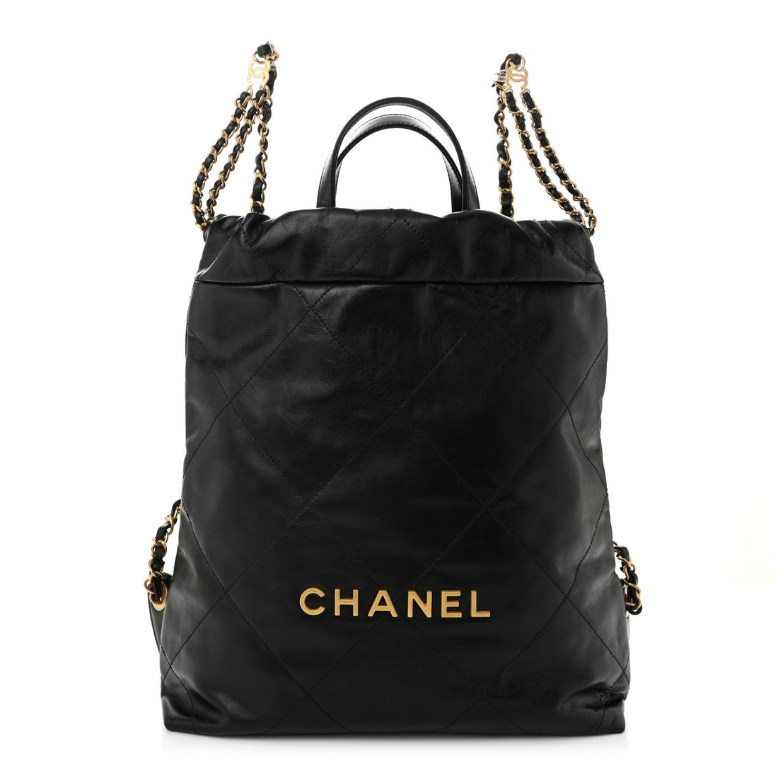 Shiny Calfskin Quilted Chanel 22 Backpack Black
