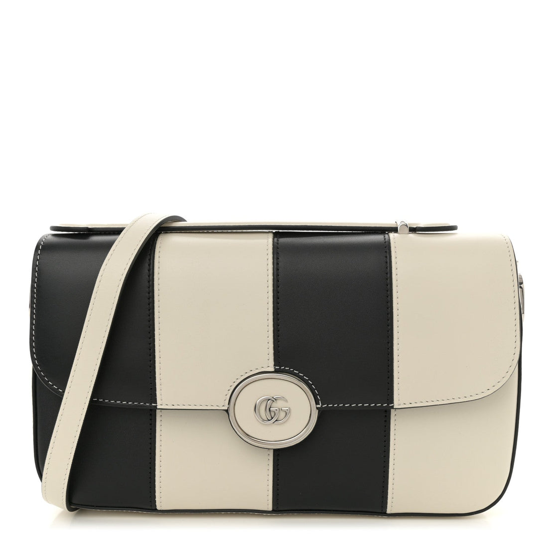 Senna Calfskin Lines Petite GG Top Handle Shoulder Bag Black Mystic White