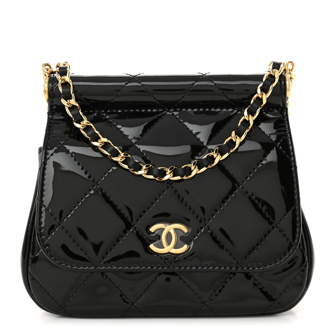 Patent Quilted Frame Clutch Flap With Chain Black