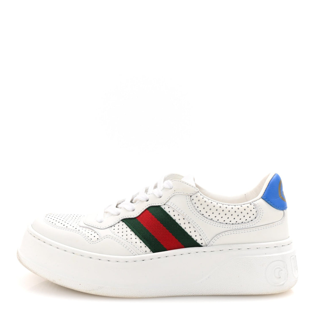 Calfskin Web Perforated Womens Platform 55mm Sneakers 38.5 White Bright Splash