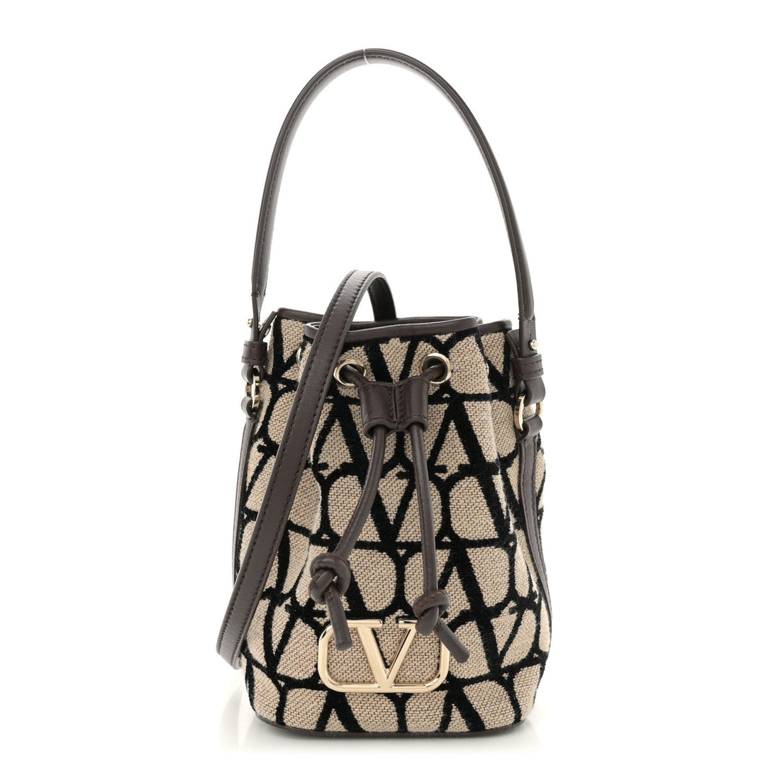 Toile Iconographe Nappa Mini Vlogo Signature Bucket Bag Naturale Black Fondant