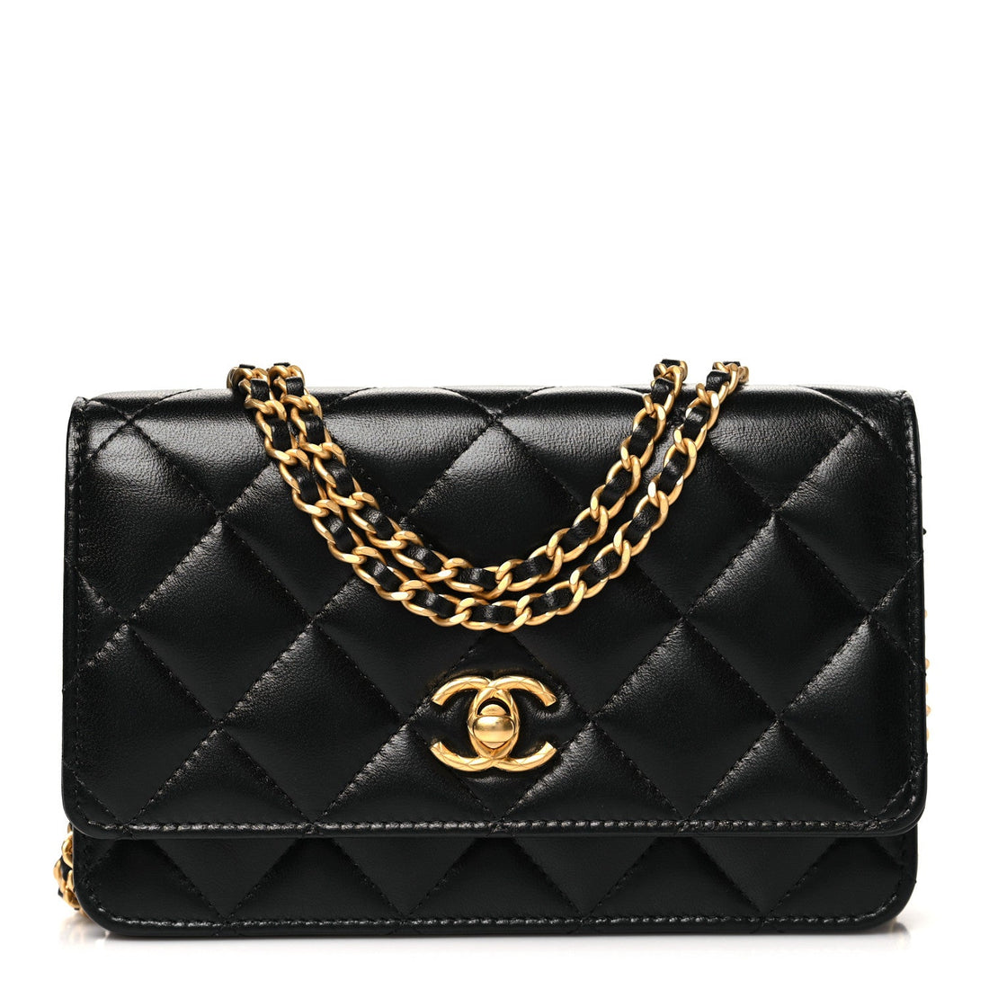 Lambskin Quilted Logo WOC Wallet On Chain Black