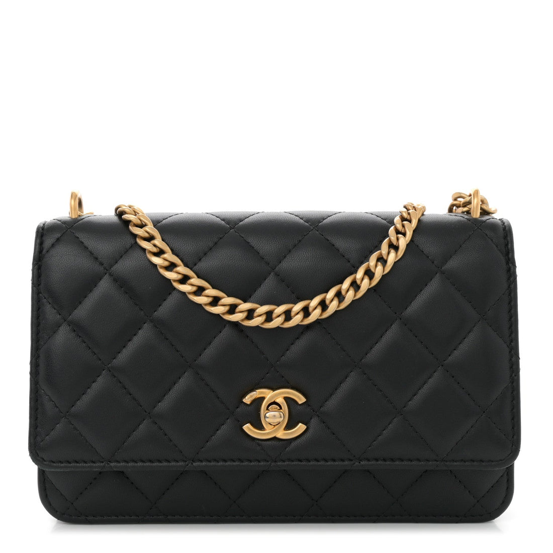 Lambskin Quilted Sweet Camellia Wallet On Chain WOC Black