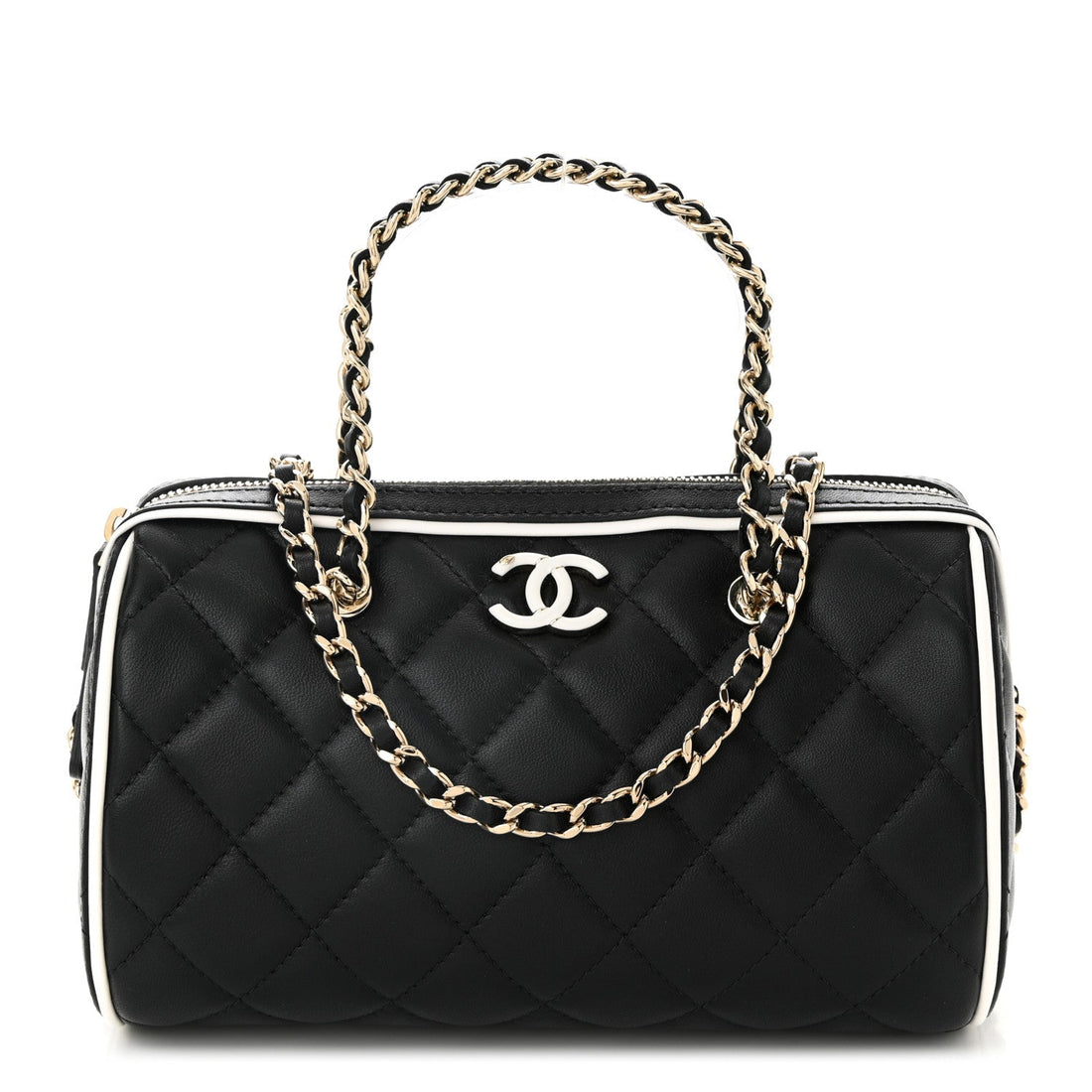 Lambskin Quilted Resin CC Mini Bowling Clutch With Chain Black White