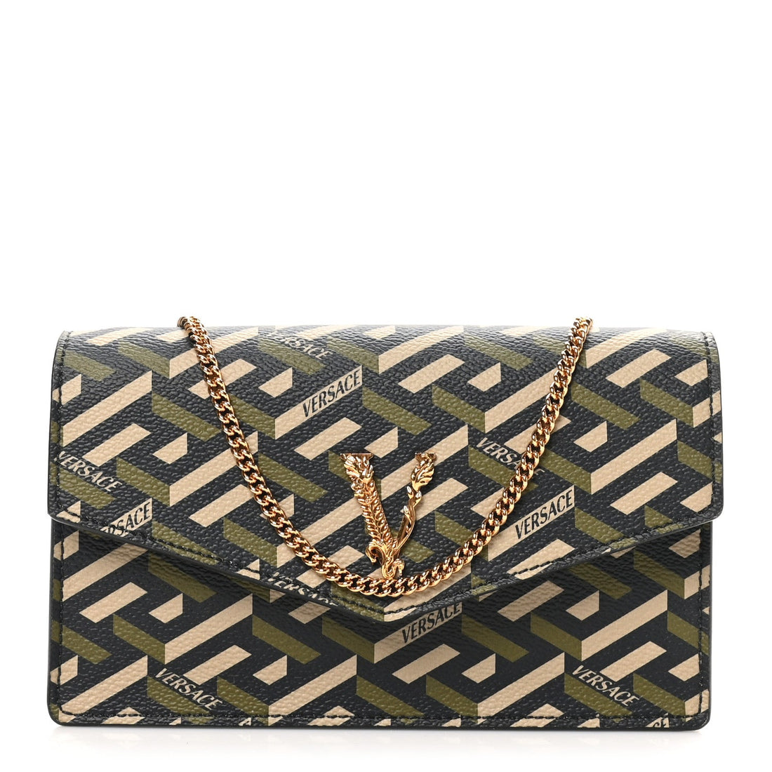 Coated Canvas Virtus La Greca Signature Shoulder Bag Black Khaki