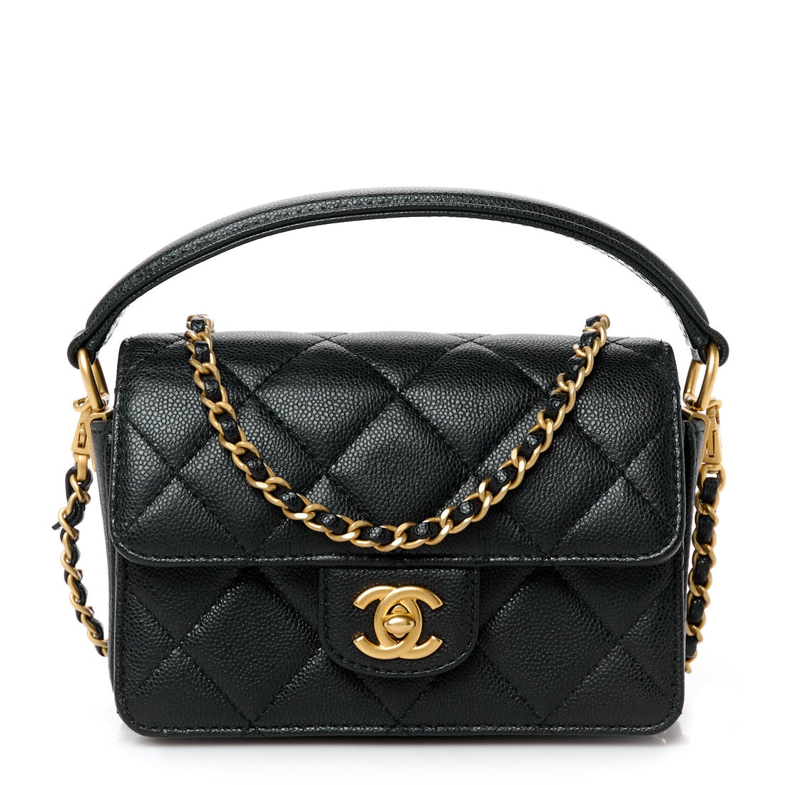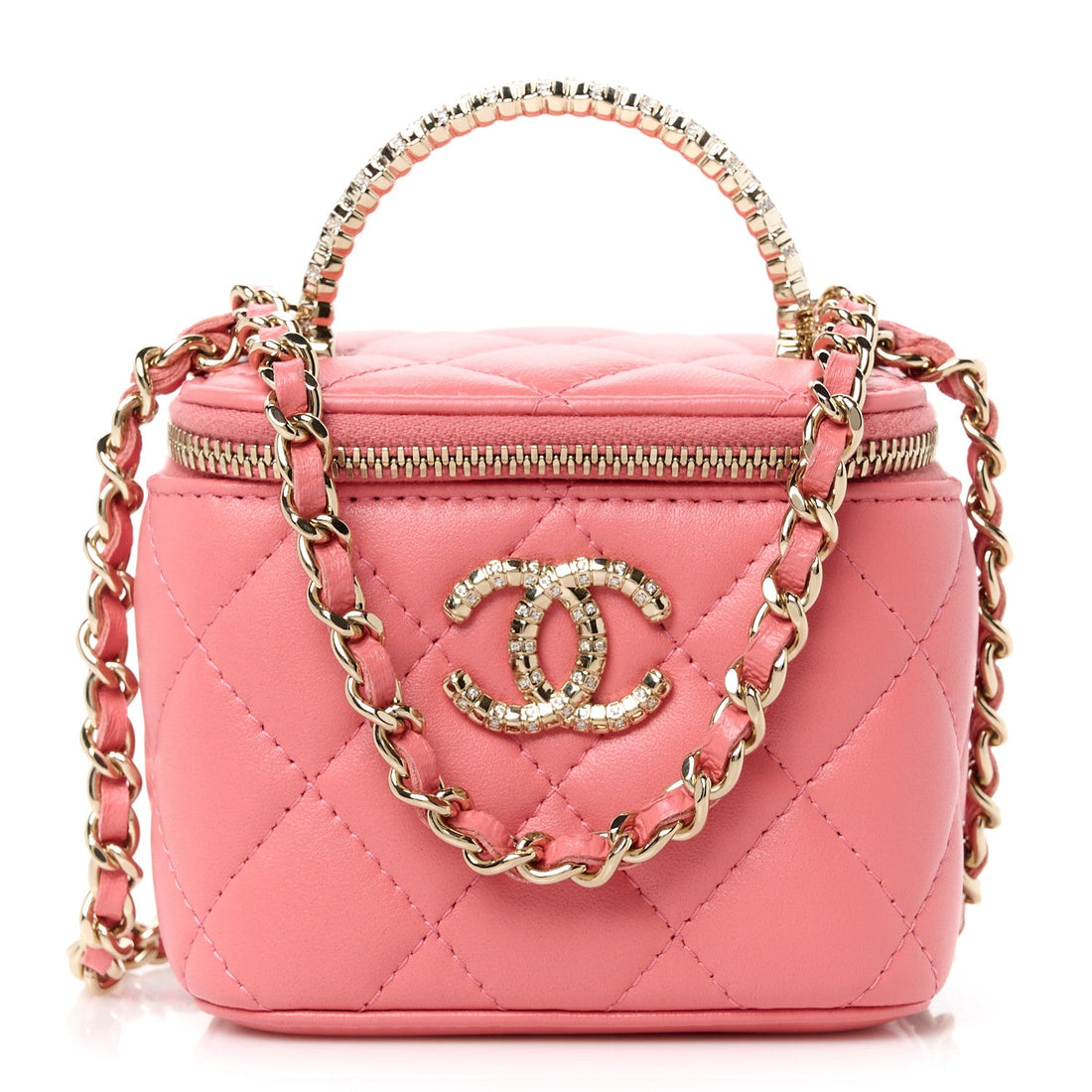 Lambskin Quilted Crystal Top Handle Mini Vanity Case With Chain Coral