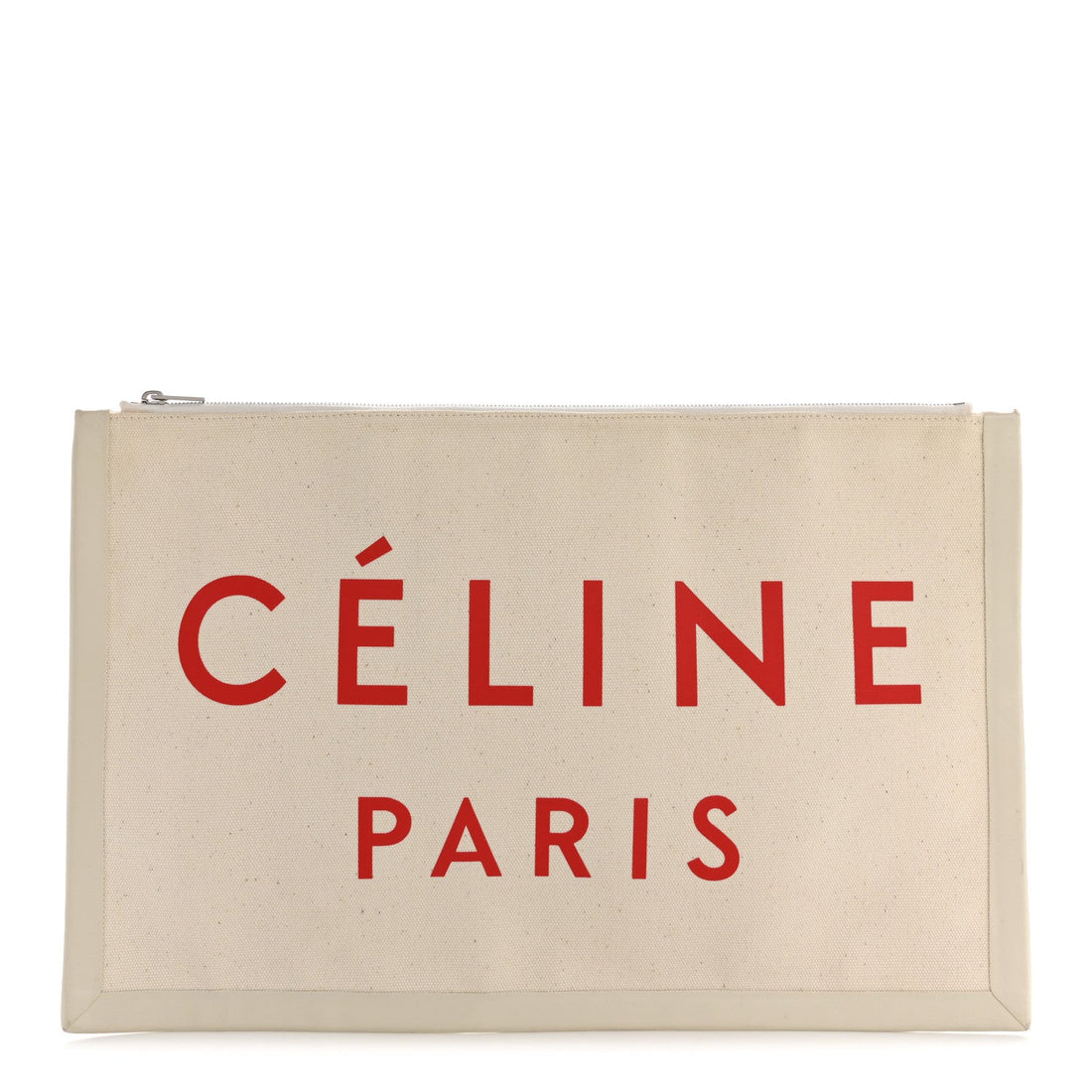 Cotton Canvas Calfskin Made In Large Pouch Red