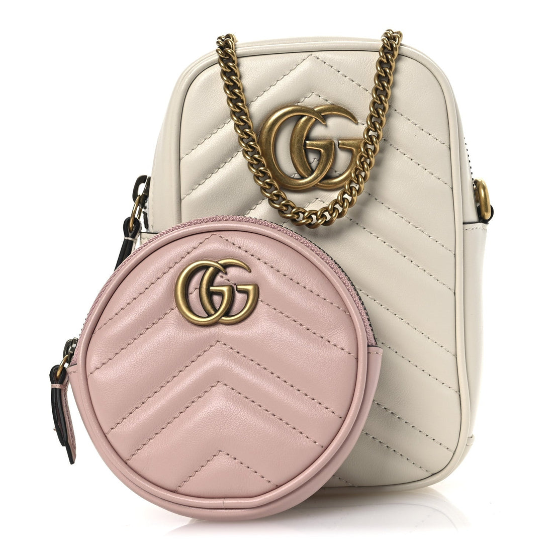 Calfskin Matelasse GG Marmont Mini Bag Coin Purse Mystic White Perfect Pink