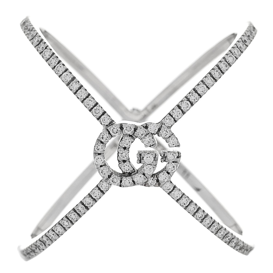 18K White Gold Diamond Running G Cross Ring 51 5.75