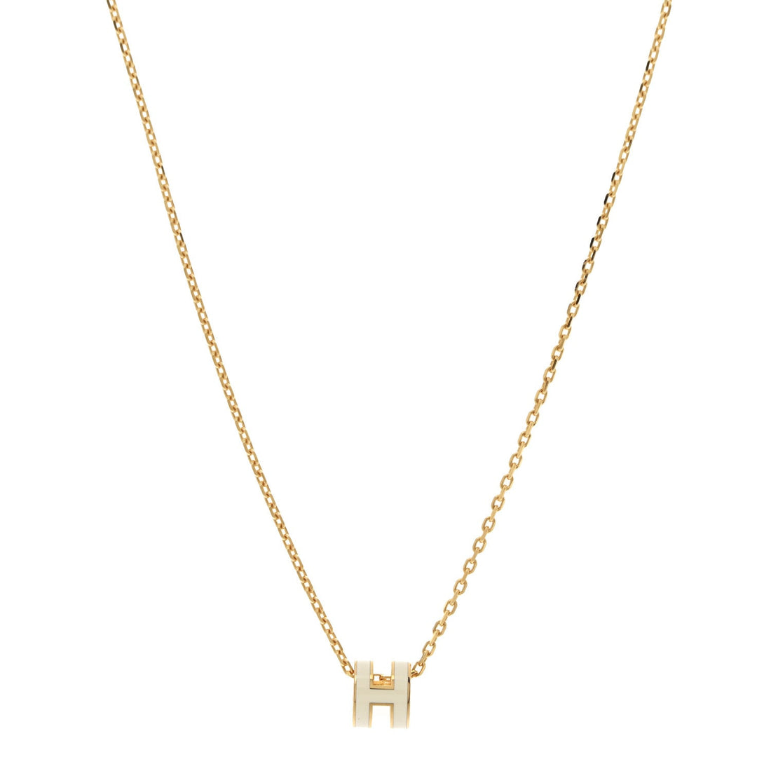Lacquered Gold Mini Pop H Pendant Necklace White