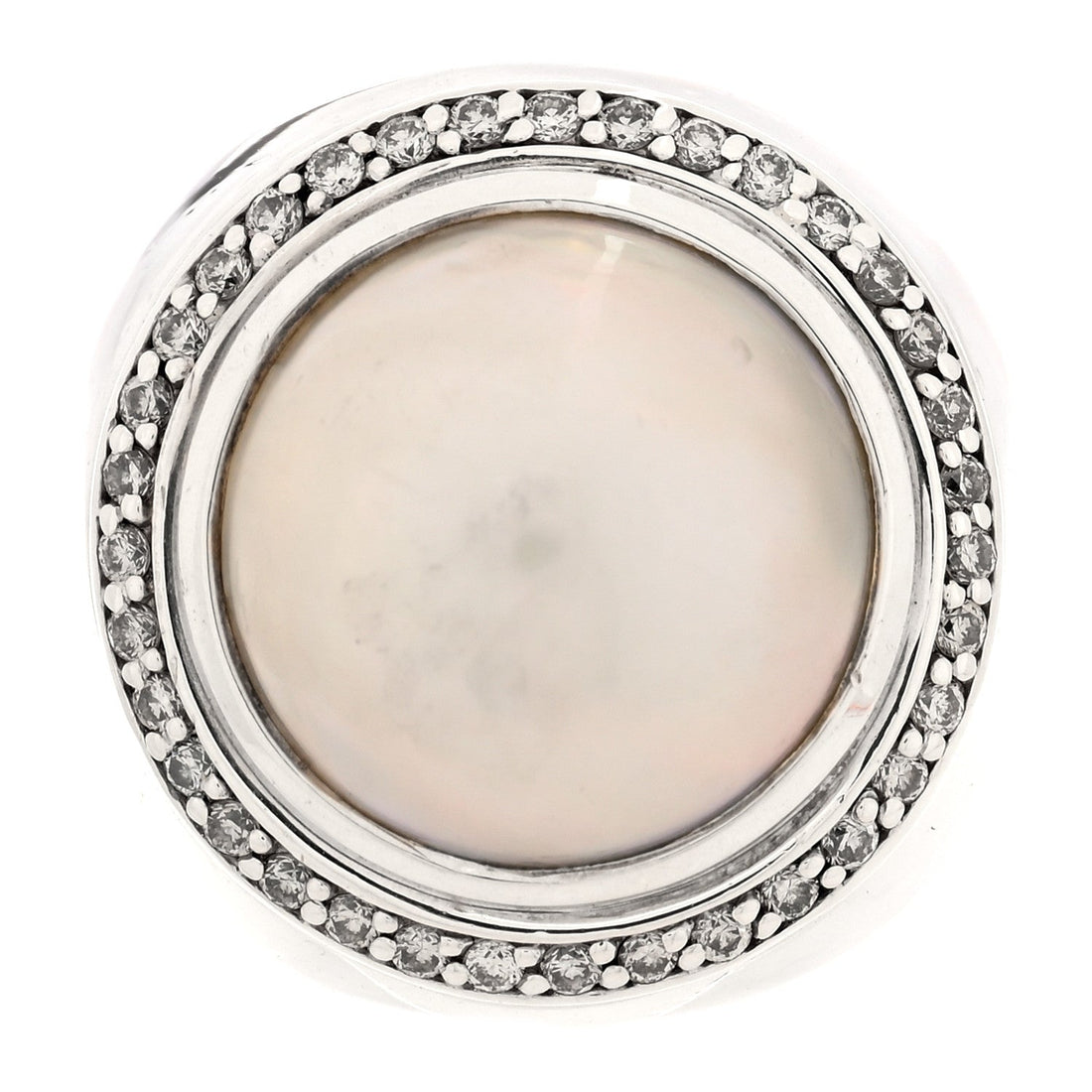 Sterling Silver Diamond Cultured Mabe Pearl 14mm Ring 49 5