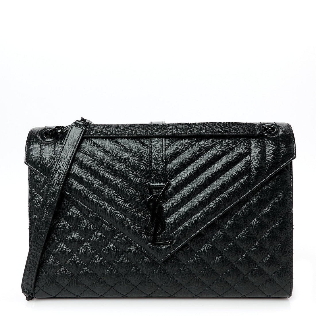 Grain De Poudre Textured Mixed Matelasse Large Triquilt Monogram Monochrome Satchel Black