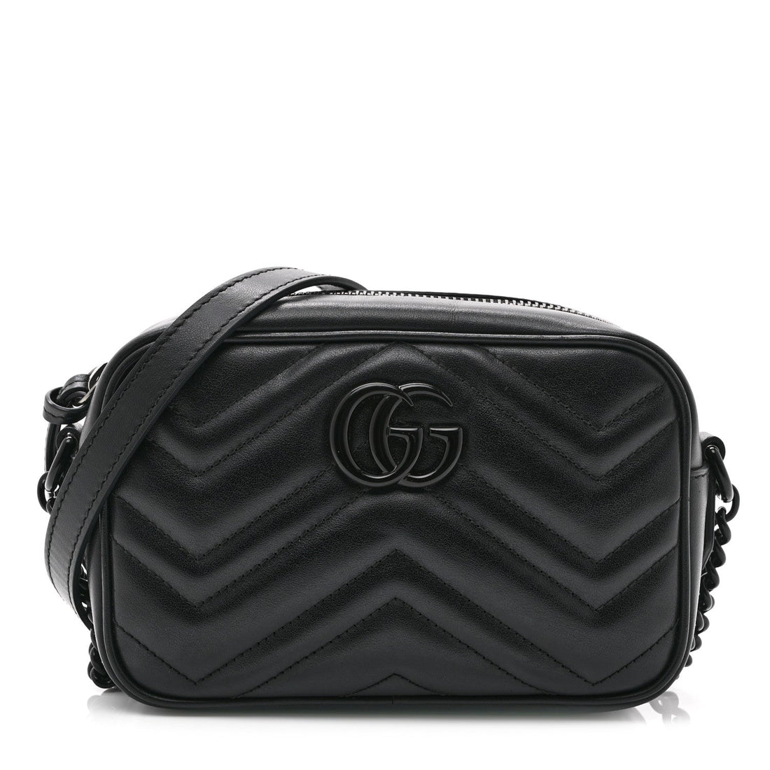 Calfskin Matelasse Monochrome Mini GG Marmont Chain Shoulder Bag Black