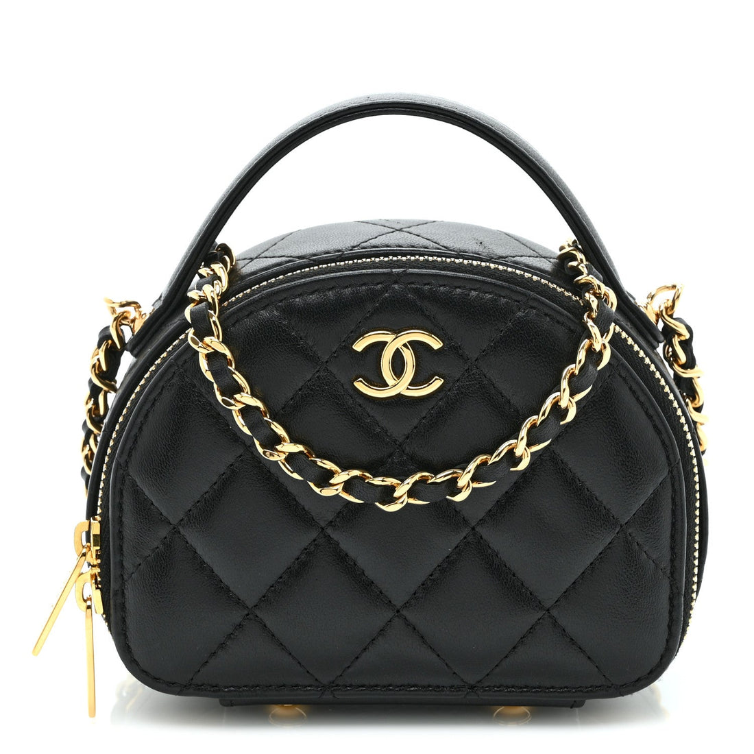 Lambskin Quilted Mini Chic Riviera Top Handle Vanity Case Black